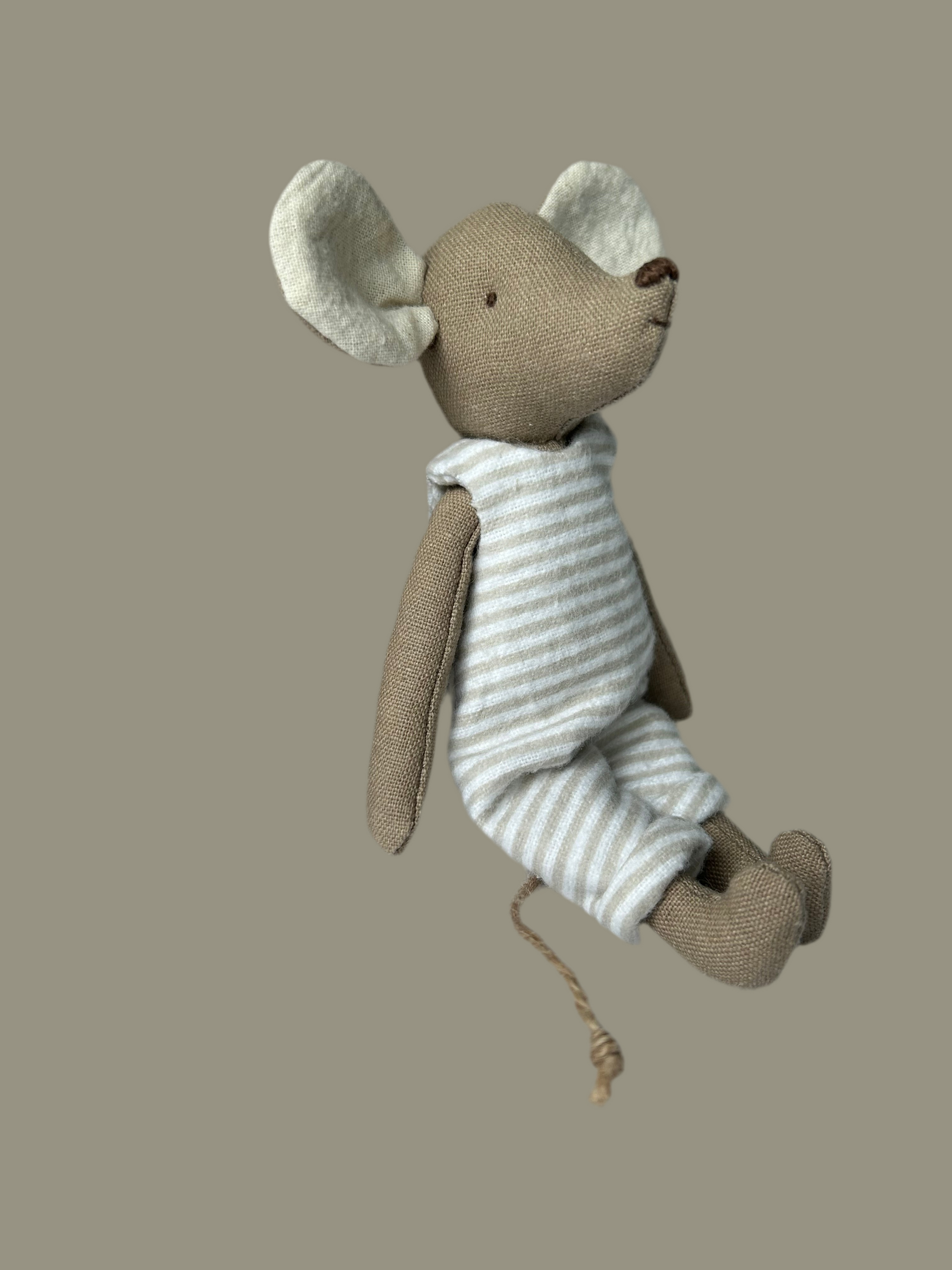 Materiales: está hecho a mano con muchísimo cuidado y cariño; fue cosido con hilos fuertes de buena calidad y su cuerpo es de tela premium de algodón con lino, su ropita es de tela de algodón. Milo tiene una colita de hilo de mecate, que si se prefiere se puede guardar entre la ropa.